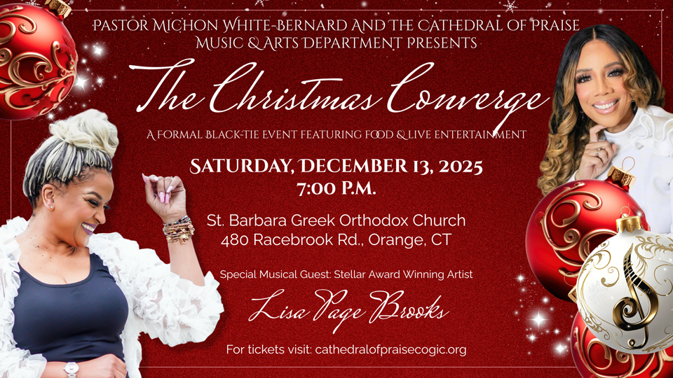 The Music & Arts Department is sponsoring "The Christmas Converge" on Saturday, December 13, 2025 beginning at 7:00 P.M. This is a Black Tie Event featuring food and live entertainment. Our special guest is Stellar Award Winning Artist, Lisa Page Brooks! The event will be held at St. Barbara Greek Orthodox Church Ballroom, 480 Racebrook...