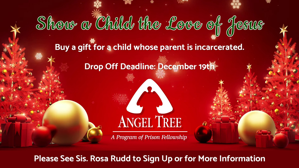 Cathedral of Praise is a proud participant of Prison Fellowship's Angel Tree Christmas Program. We invite you to share the hope of Jesus with a child in our community by purchasing a Christmas gift and sharing a message of love on behalf of their parent who is incarcerated. The Deadline to drop off gifts is...